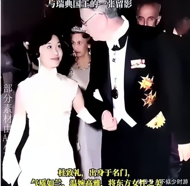 40. 颁奖晚宴上,她身穿一袭无袖旗袍,仪态万方,挽着瑞典国王翩翩起舞。